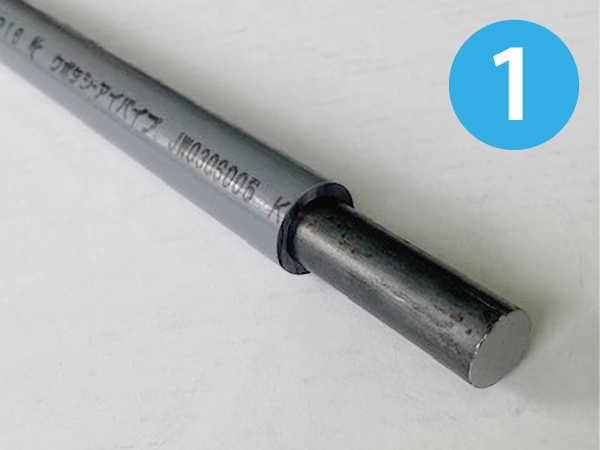 ※定尺4mのVP16管であっても、16mm丸鋼がぴったり簡単に挿入できます。但し、丸鋼が極端に曲がってるケースは除きます。VP16管が多少、しなっていても問題ありません。使用上の注意