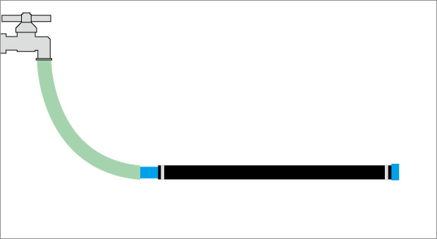 - ホースは高低差をつけないように、出来る限り水平に設置してください。